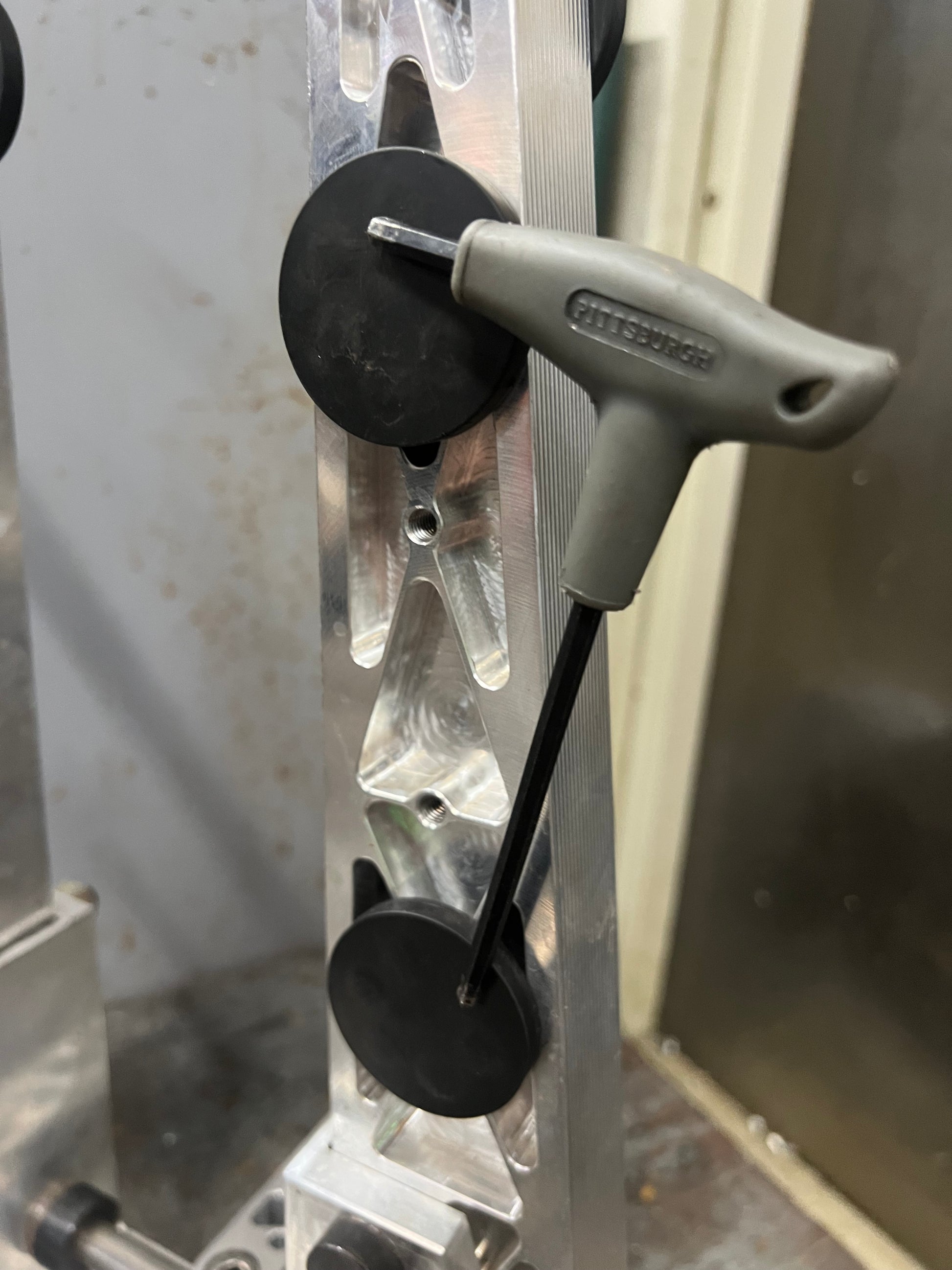 On arm threaded holes, with the ability to bolt magnets or bins directly to the stand tools and hardware can't wonder off into the shop.